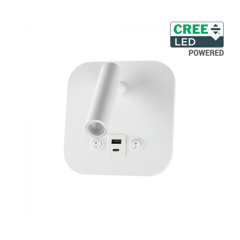 V-TAC APPLIQUE LED Chip CREE DA PARETE 8W 3000K 830LM ORIENTABILE CON RICARICA USB/PD BIANCO - SKU: 240026 - VT-80068