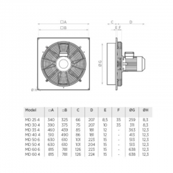 OERRE ASPIRATORE ASSIALE HEAVY DUTY 90W 340x340mm IP55 A PARETE - SKU: 0073101