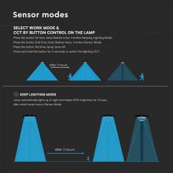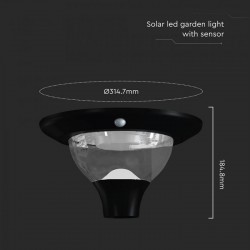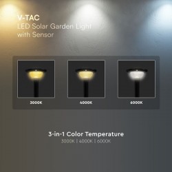 V-TAC LAMPADA LED SOLARE DA PALO 15W 3IN1 2200LM CON SENSORE PIR IP65 NERO - SKU: 24098 - VT-12014CCT