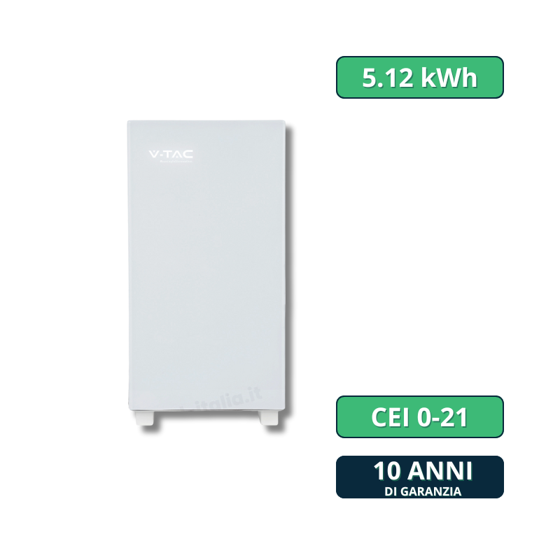 V-TAC BATTERIA DI ACCUMULO 5,12KWH 100AH 51,2V AGLI IONI DI LITIO (LiFePO4) BMS INTEGRATO PER INVERTER FOTOVOLTAICI
