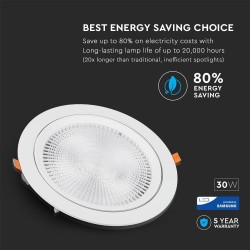 V-TAC FARETTO LED DA INCASSO ROTONDO 30W 4000K 2700LM Ø:225mm FORO Ø:195mm ORIENTABILE SAMSUNG BIANCO