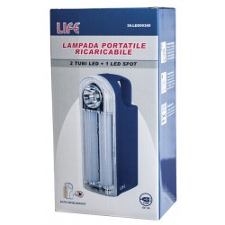 LIFE LAMPADA RICARICABILE 2 TUBI LED + 1 LED SPOT PORTATILE BATTERIA 6V 4Ah CON FUNZIONE ANTI BLACK OUT