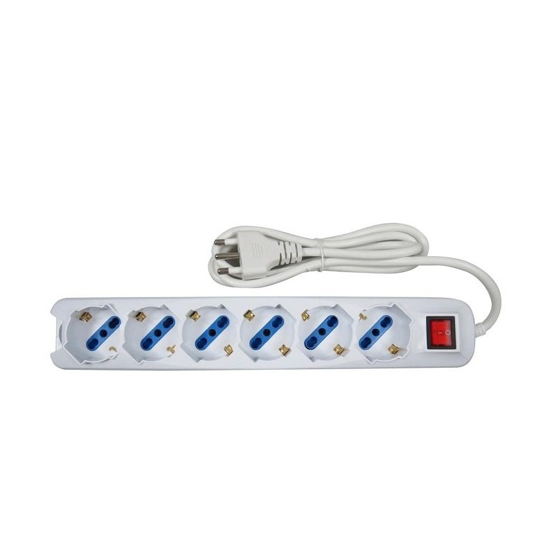 ECOVA MULTIPRESA CON 6 PRESE SCHUKO/BIPASSO SPINA 2P+T 16A CAVO 1,5 MT E INTERRUTTORE - SKU: ECO30081
