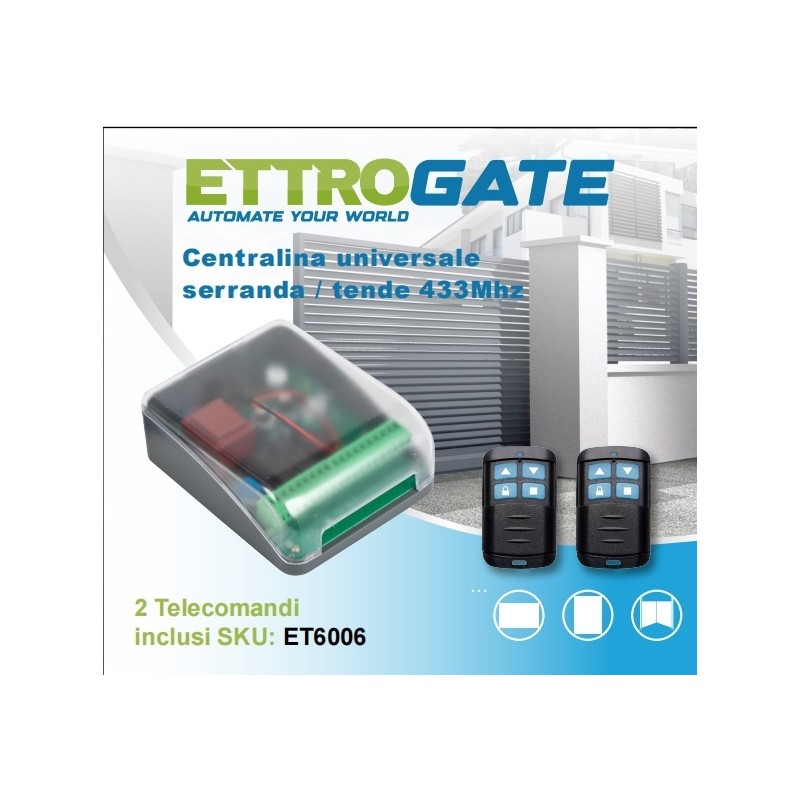 ETTROIT KIT CENTRALINA UNIVERSALE PER TENDE E SERRANDE 433,92 Mhz CODICE FISSO CON 2 TELECOMANDI 4 CANALI - SKU: ET6006