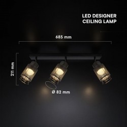 V-TAC PLAFONIERA LED 3x6W 3000K 2160LM CON FARETTI ORIENTABILI NERO