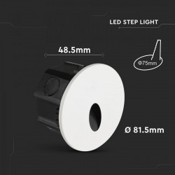 V-TAC FARETTO SEGNAPASSO LED DA INCASSO ROTONDO 3W 3IN1 170LM Ø:81.5mm FORO Ø:75mm BIANCO - SKU: 24010- VT-10184