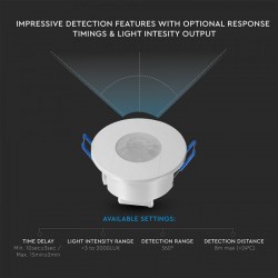 V-TAC SENSORE MOVIMENTO INCASSO PIR 360GR 8MT BIANCO 600W IP20 - SKU: 24108 - VT-81041