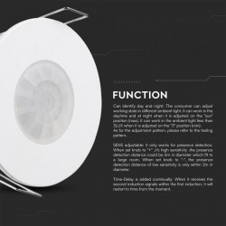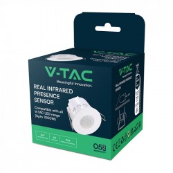 V-TAC SENSORE MOVIMENTO INCASSO PIR 360GR 8MT BIANCO 600W IP54 - SKU: 24112 - VT-81005
