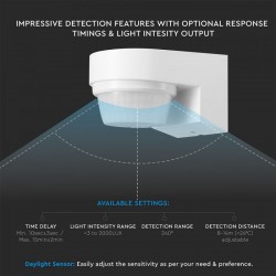 V-TAC SENSORE MOVIMENTO PIR DA PARETE 14MT 1000W IP65 BIANCO