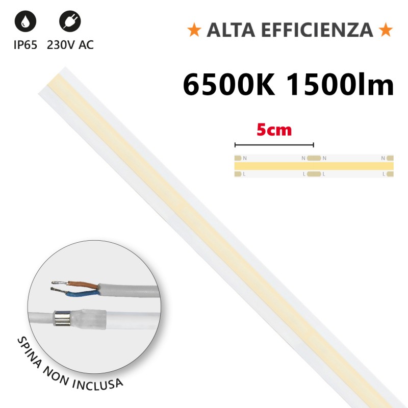 ALCAPOWER STRISCIA LED MILKY 5M 6500K 230V IP65 15W/MT 1500LM/MT