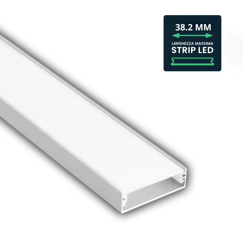 V-TAC PROFILO IN ALLUMINIO 2MT CON COVER OPACA PER STRISCE LED DI LARGHEZZA MAX 38.2mm - SKU: 24100 - VT-71001