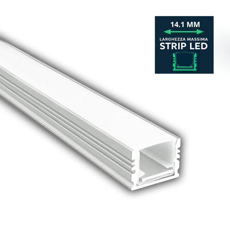 V-TAC PROFILO DA INCASSO IN ALLUMINIO 2MT CON COVER OPACA PER STRISCE LED DI LARGHEZZA MAX 14.1mm - SKU: 24105- VT-71006