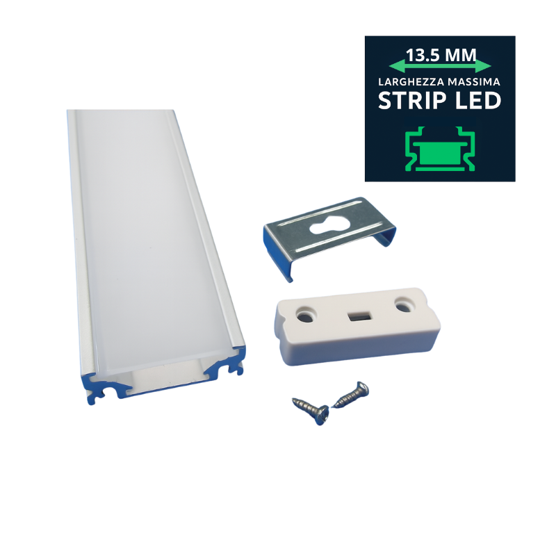 V-TAC PROFILO IN ALLUMINIO 1MT CON COVER OPACA PER STRISCE DI LARGHEZZA MAX 13.5mm